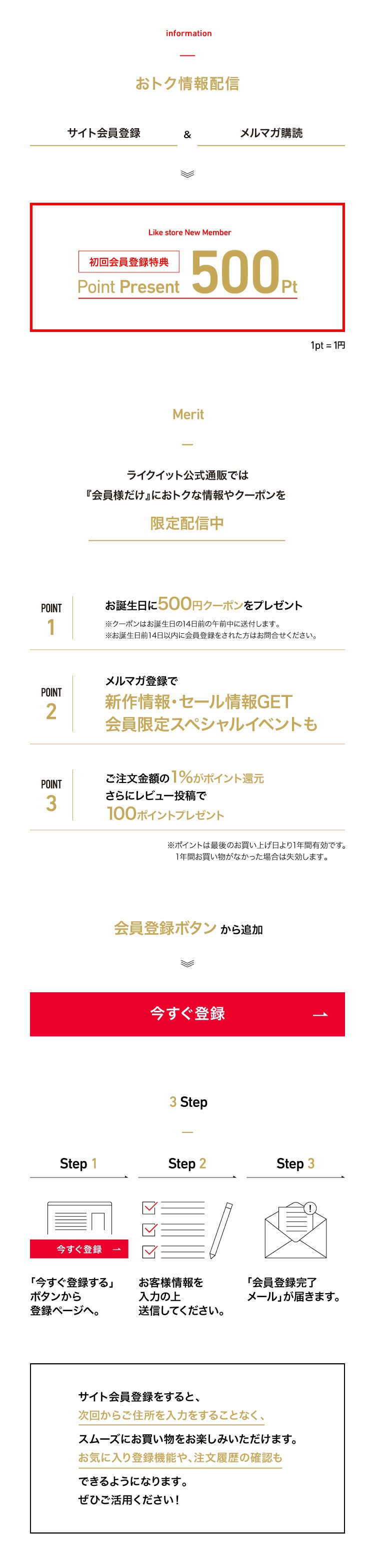 新規会員登録で500ポイントプレゼント!