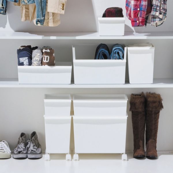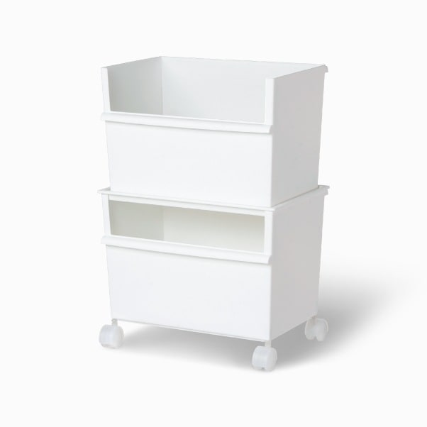 Just itカラーボックスにジャストサイズ 組み合わせ自由な収納システム。 前後の置き方によってオープンとクローズが選べたり、 フタを使って積み重ねもできます。 キャスター付きのセットタイプで、棚下やデスク下などでの使用に便利です。 セット内容:JTR-01 ×1 / JTR-02 ×1 / JTR-03 ×1 / LS-33 ※キャスターは取り外し可能
