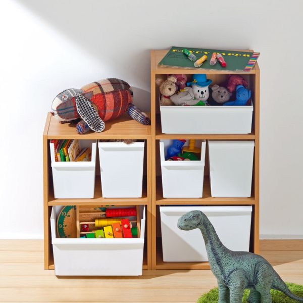 細かいおもちゃをスッキリ仕分けられてカラーボックスにピッタリ収まるサイズ設計。