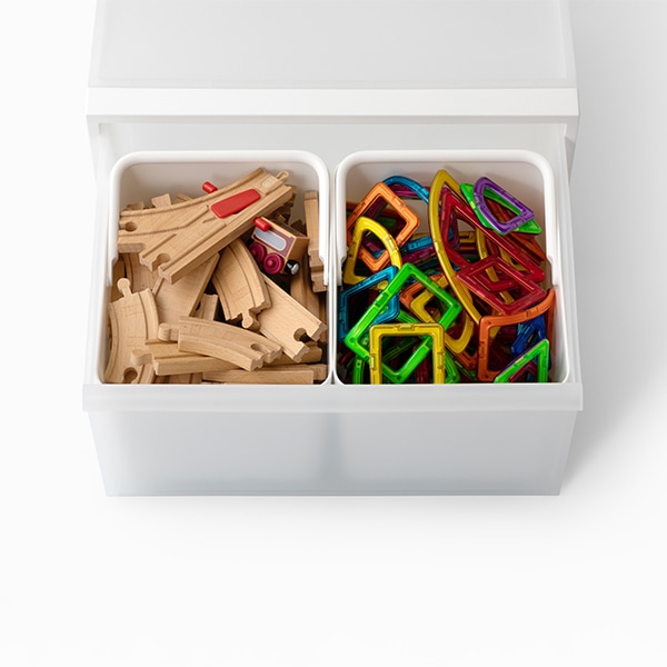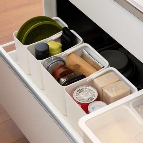 システムキッチンの引き出し内の仕切りや、リビングのガジェット類・おもちゃなどの収納としてもおすすめです。