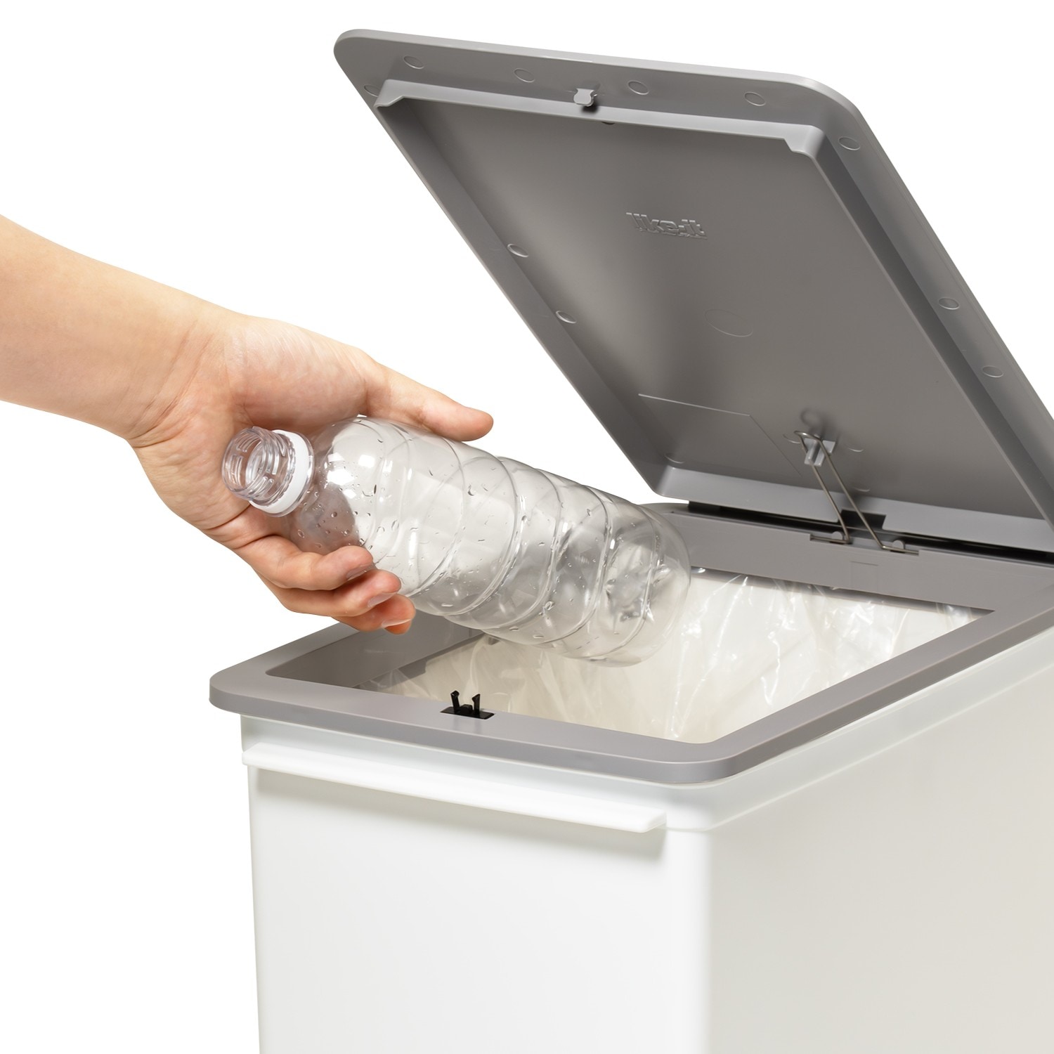 ワンタッチで大きく開閉、片手で捨てられるゴミ箱 棚下などに収まりの良い高さ設計で、単体使いでもインテリアに溶け込むシンプルなデザインです。 フロントオープントラッシュビンの上に積み重ねて、上下で分別しての利用も可能です。 別売りのキャスターを取り付けることもできます。 ※浅型(17L)タイプのみ 取扱説明書(PDF:697KB) 交換パーツラッチパーツ / V字パーツの販売もございます。