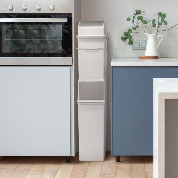 フロントオープンタイプを下段に積み重ねて、上下でゴミの分別をすることができます。スタッキング機能を使うことで持て余しやすい縦の空間を有効活用することができます。
