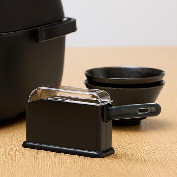 しゃもじを置くだけで自然に閉まる専用ケース付きで、ホコリを防ぎながら食卓に美しく置けます。